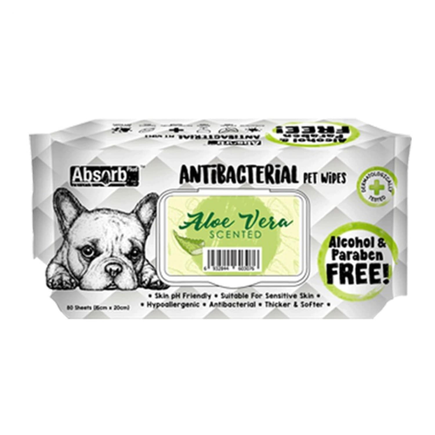 Absolute Pet Absorb Plus Antibacterial Pet Wipes Aloe Vera 80 sheets