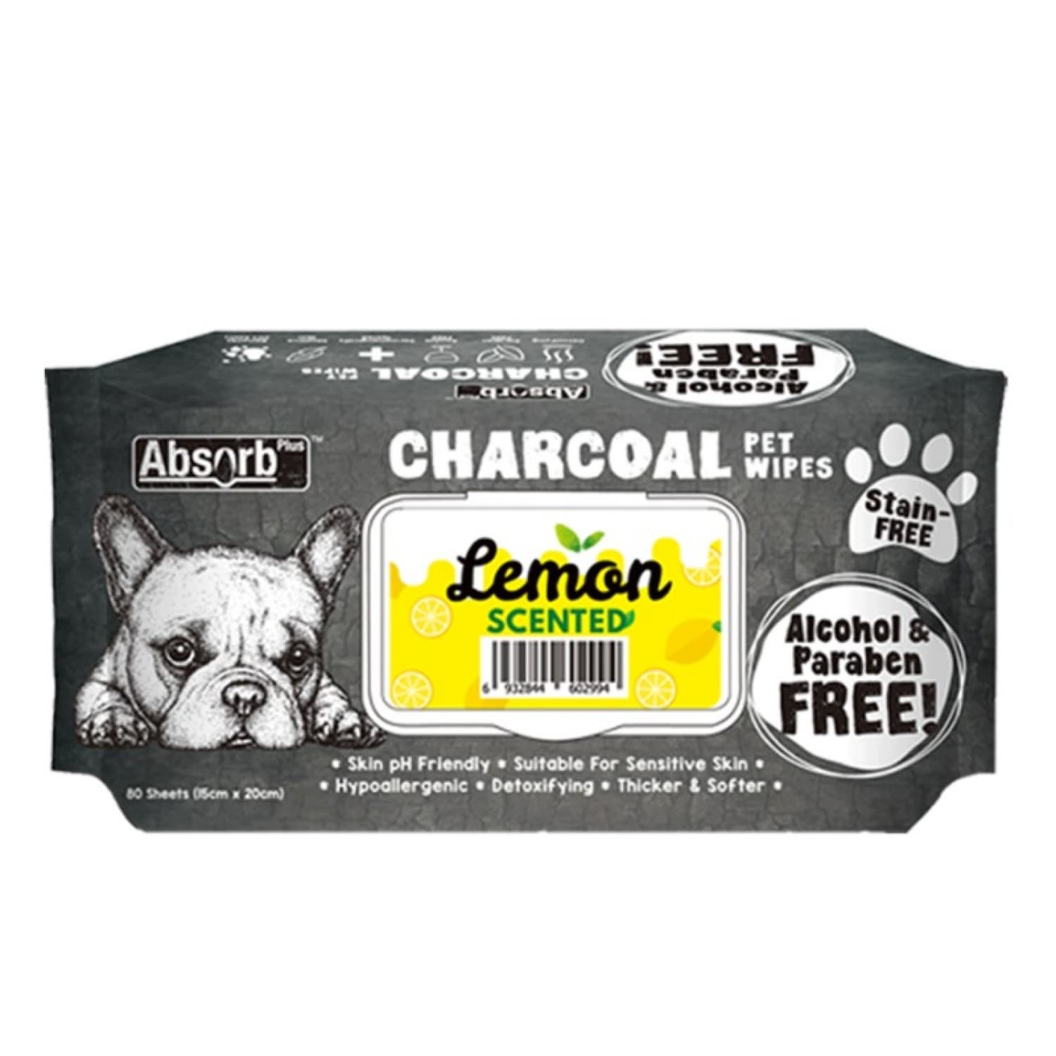 Absolute Pet Absorb Plus Charcoal Pet Wipes Lemon 80 sheets