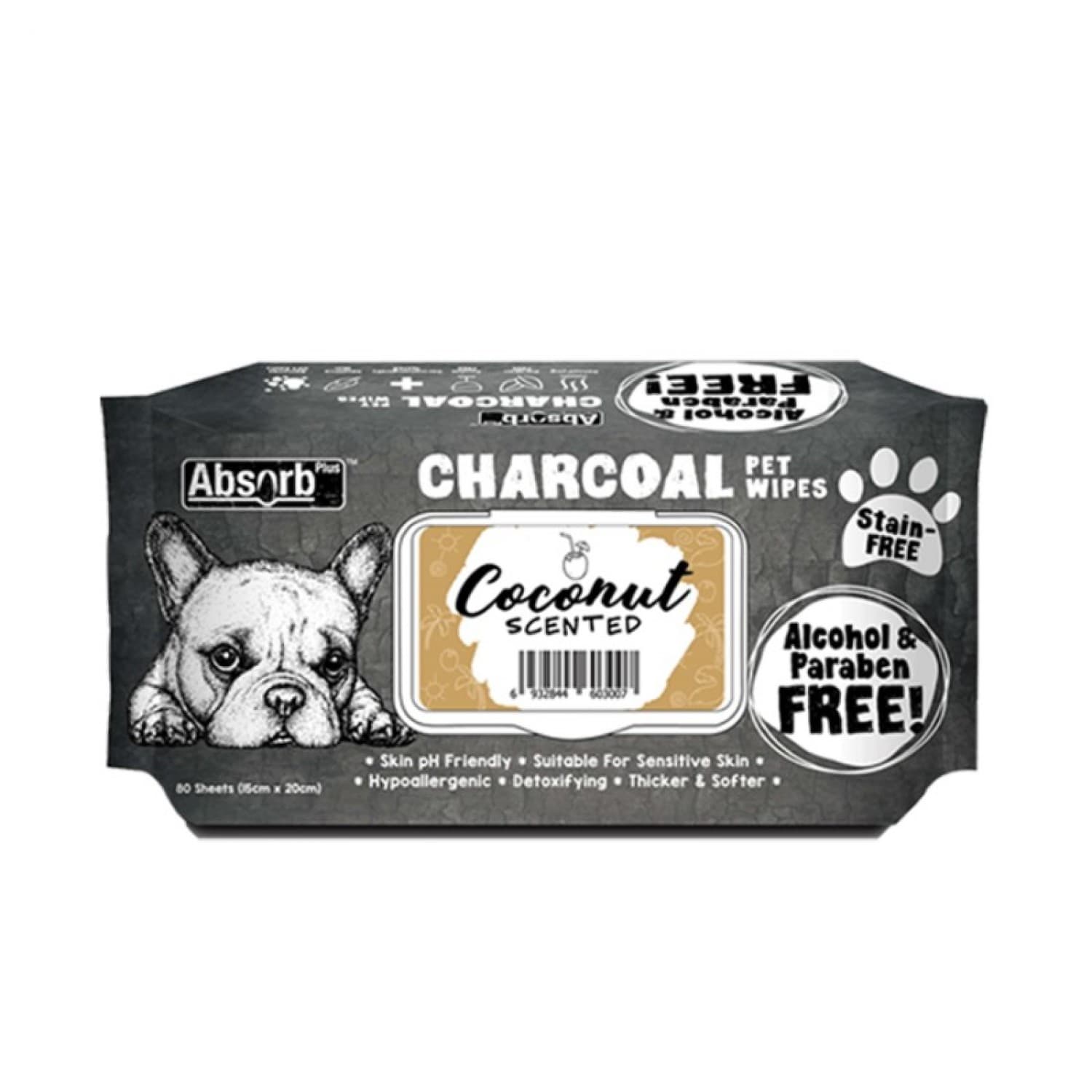 Absolute Pet Absorb Plus Charcoal Pet Wipes Coconut 80 sheets