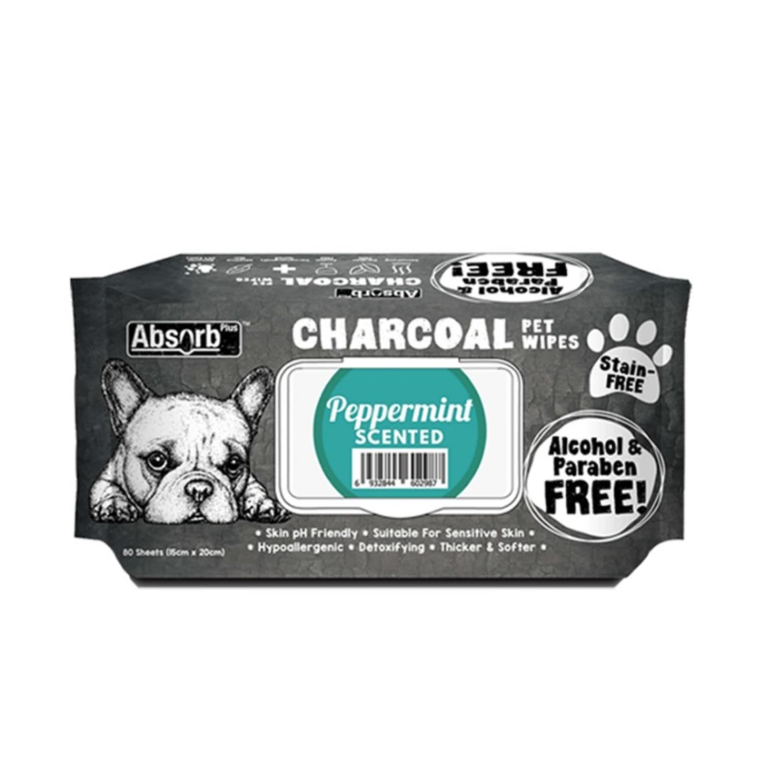 Absolute Pet Absorb Plus Charcoal Pet Wipes Peppermint 80 sheets