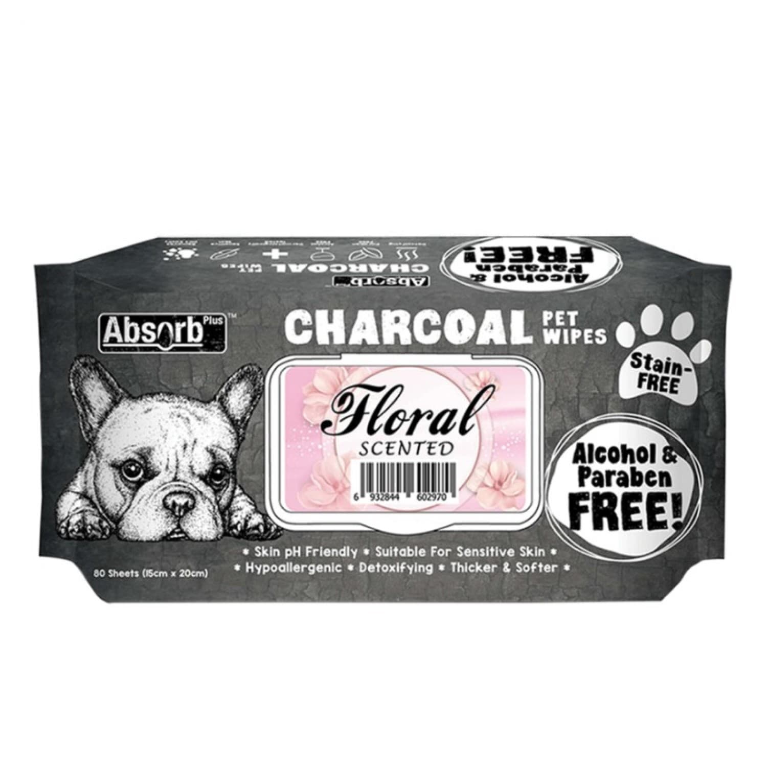 Absolute Pet Absorb Plus Charcoal Pet Wipes Floral 80 sheets