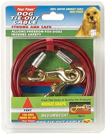 Four Paws Vinyl Coated Steel Cable Dog Tie Out - Medium Weight 15 ft.