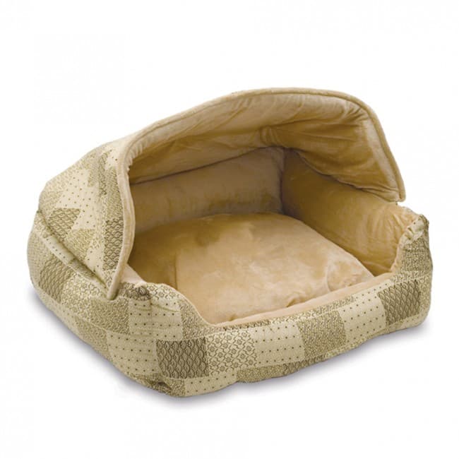 K&H Hooded Lounge Sleeper Tan Patchwork Print 20" x 25"/51x62Cms