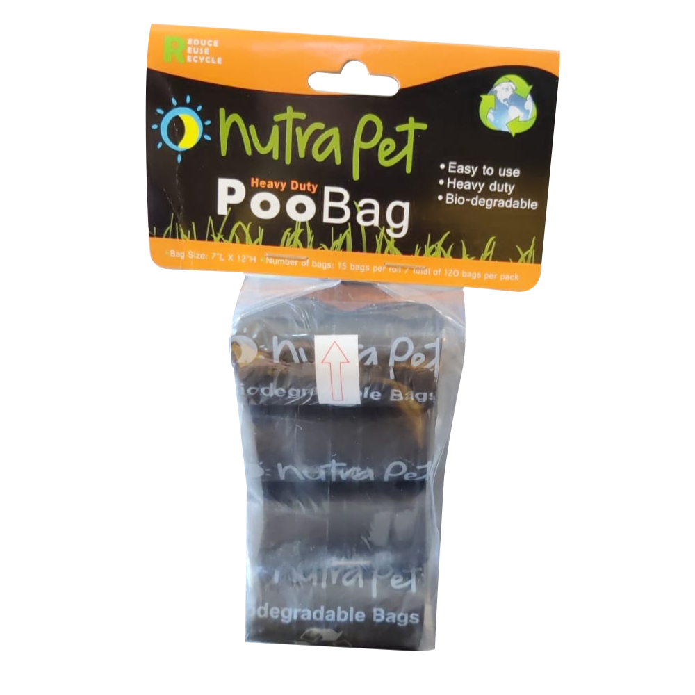 Nutrapet Black Poo Bags 8 Rolls with Header Card