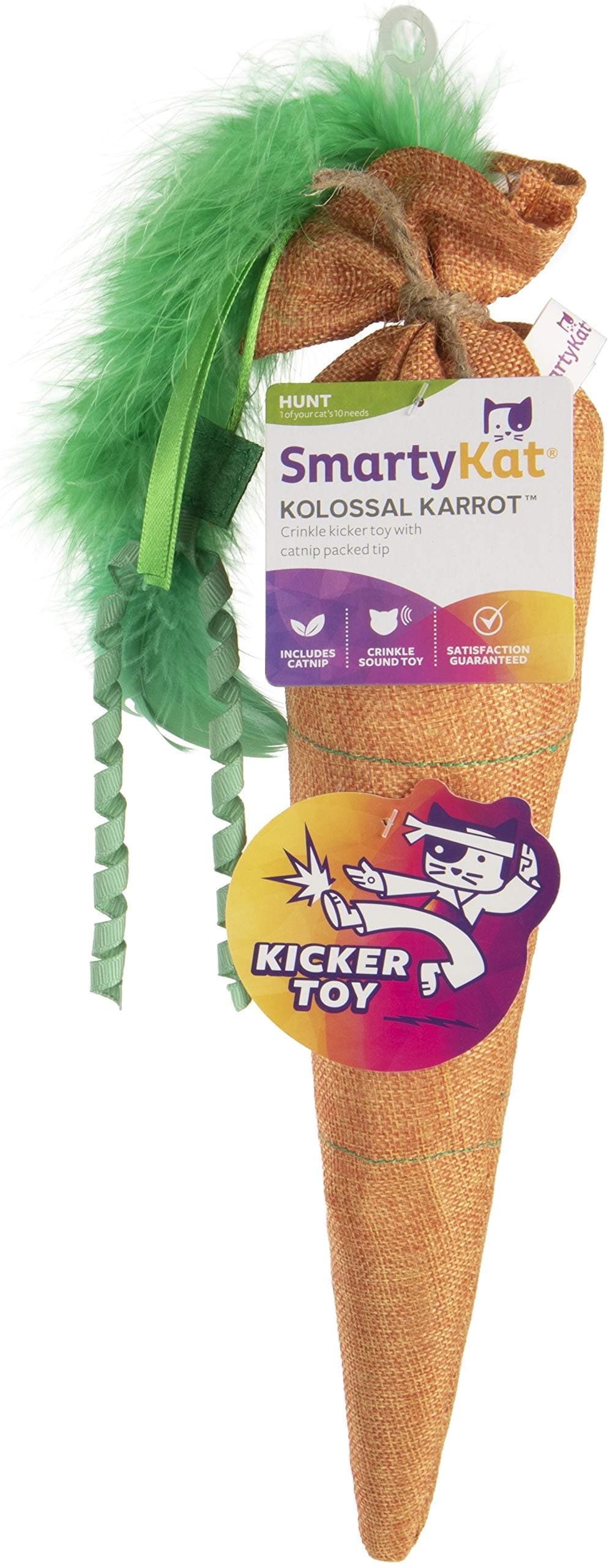 SmartyKat® Kolossal Karrot™ Plush Crinkle Cat Kicker Toy with Catnip
